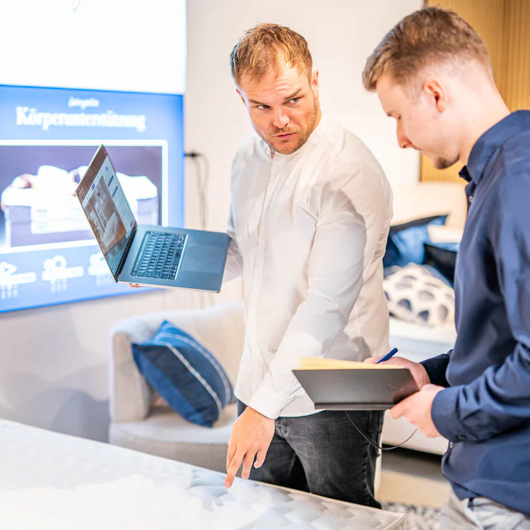 Wir passen das Bett an deine persönlichen Bedürfnisse an. Gehen mit dir alle Features und Besonderheiten live am Bett durch.